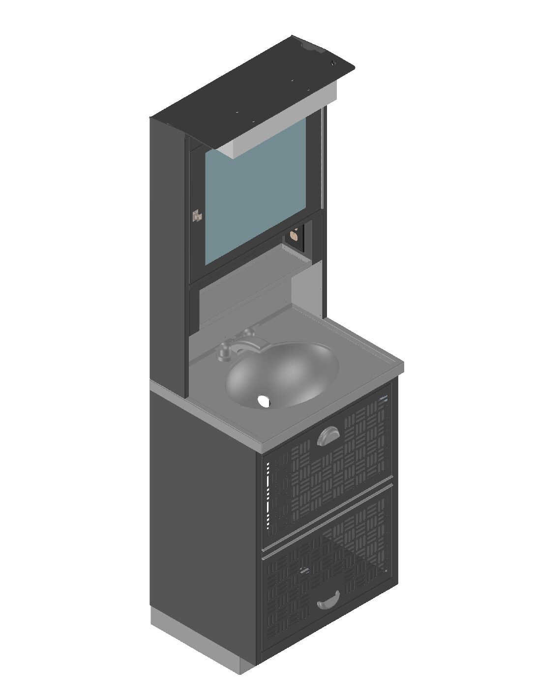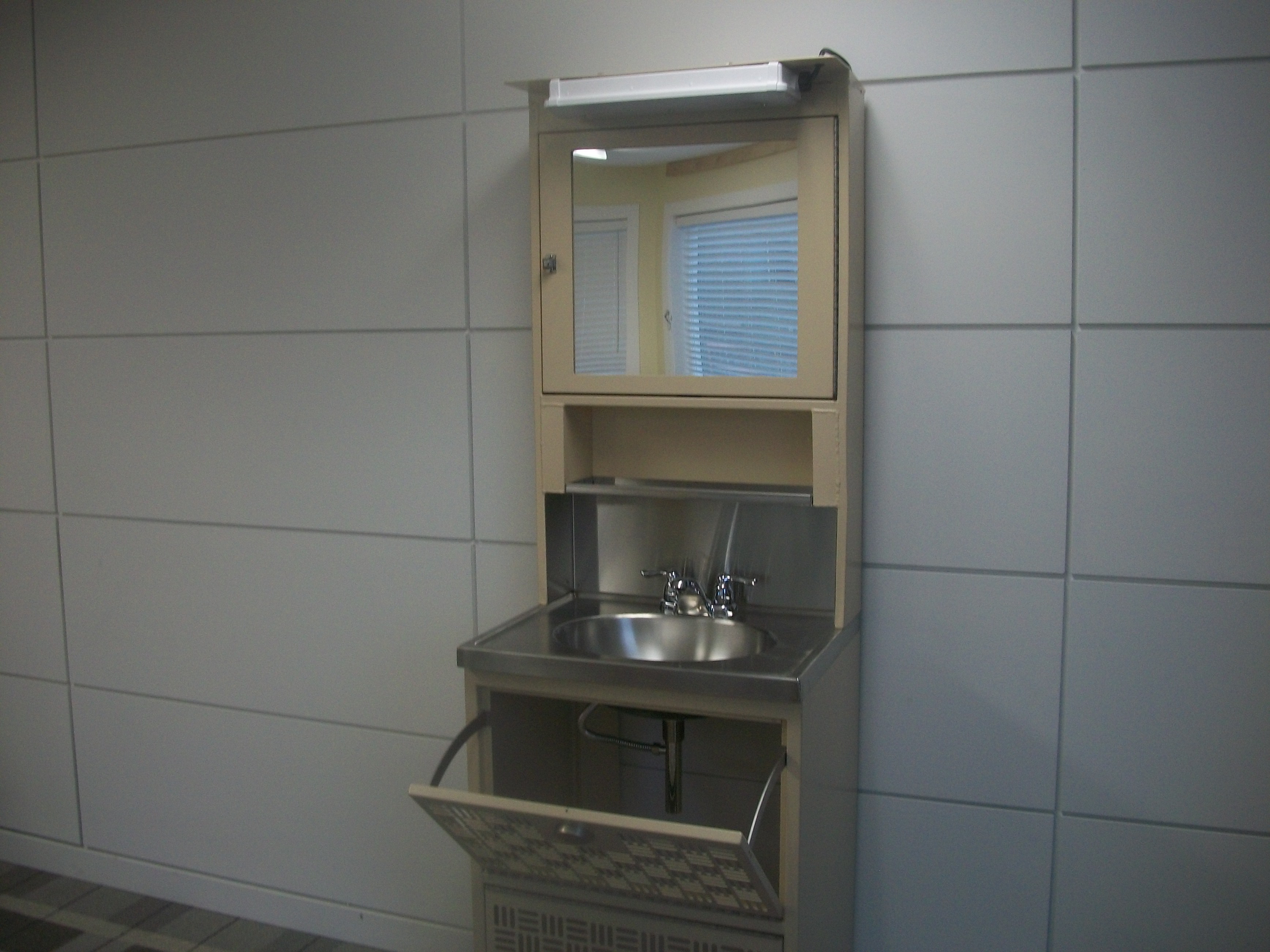 Aluminum Lavatory Cabinet with Stainless Countertop Sink.