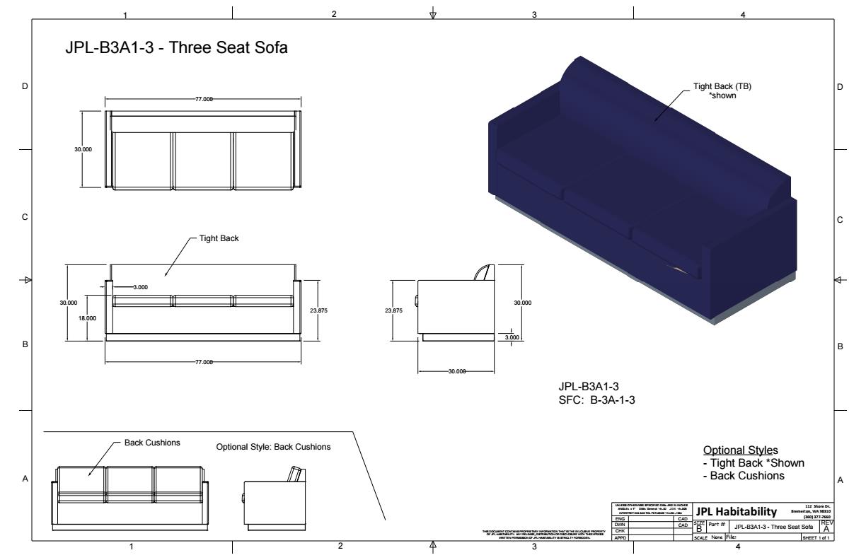 Size: 77″W x 30″D x 30″H (Including 3″ Sub Base)