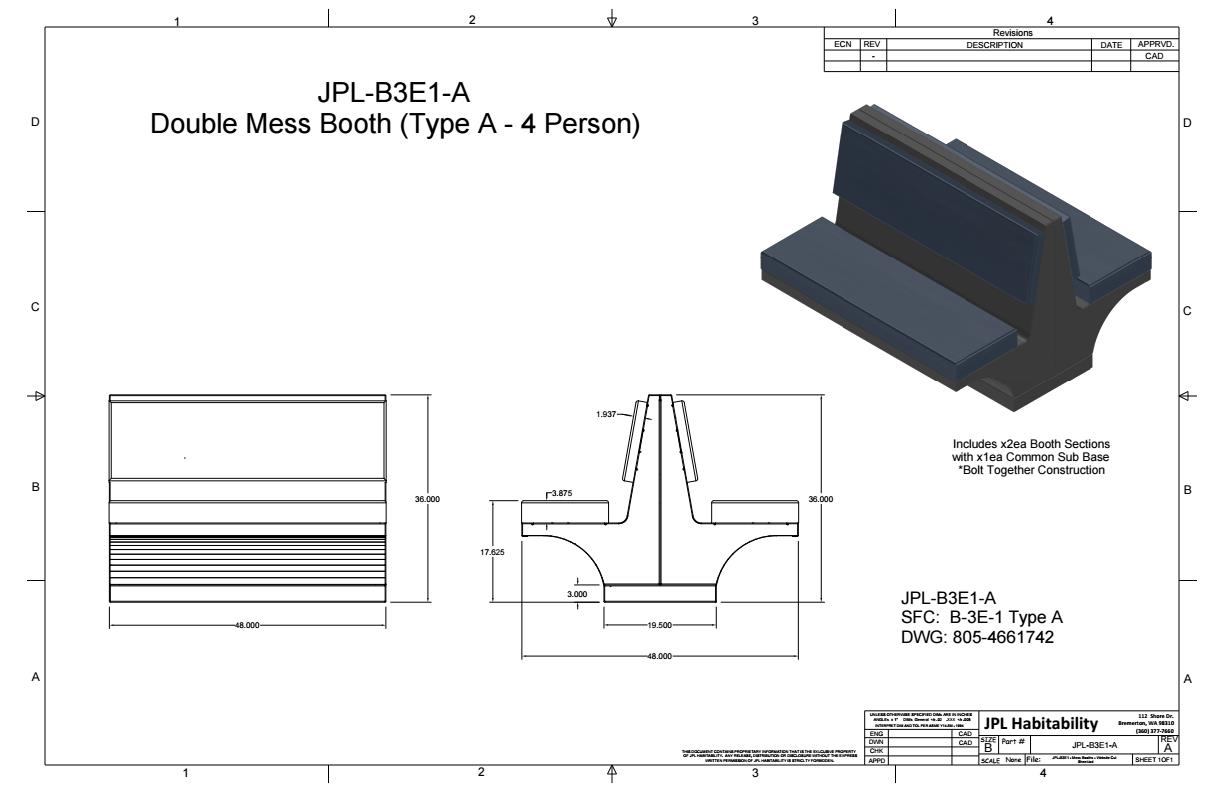4 Person Mess Booth, consists of x2ea Sections Back-to-Back with a common sub base.