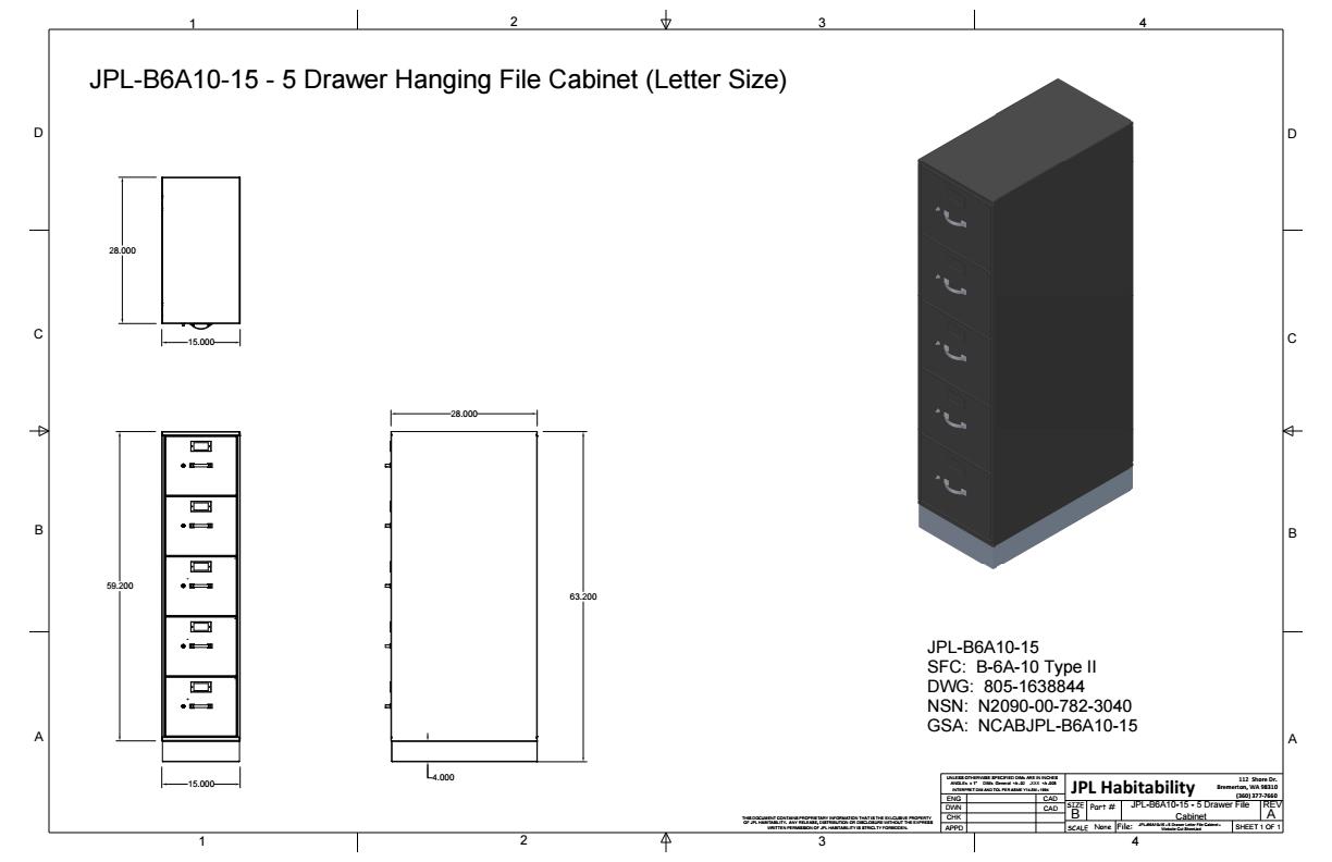 JPL-B6A10-15 – 5 Drawer File Cabinet – Letter Sized