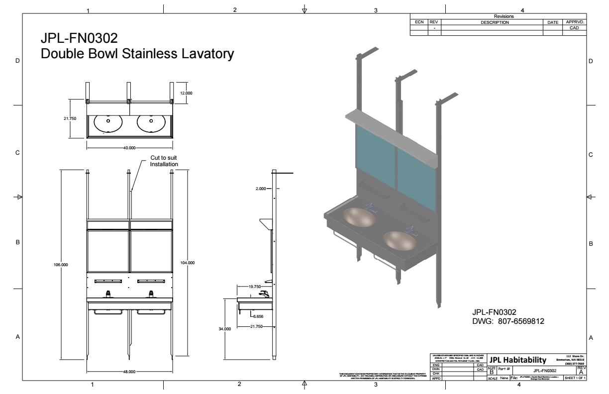 Double Stainless Lavatory Sink with Mirror and Light