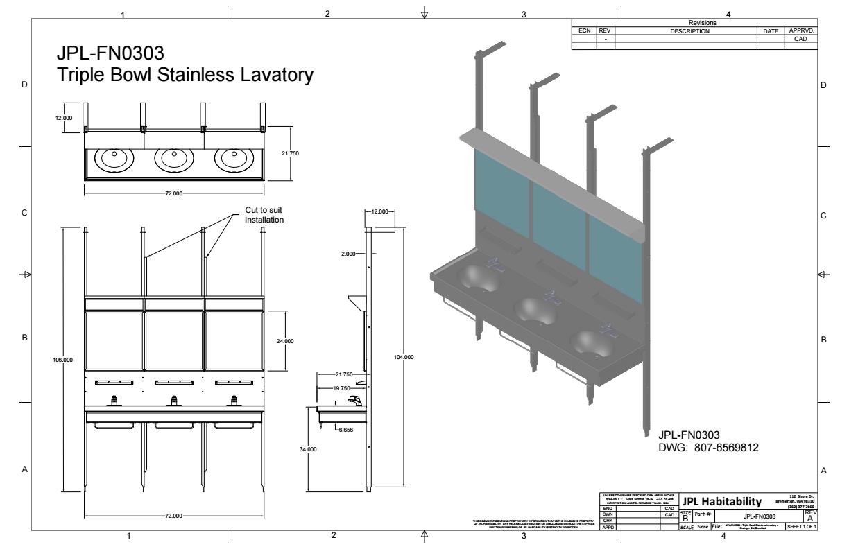 Triple Stainless Lavatory Sink with Mirror and Light
