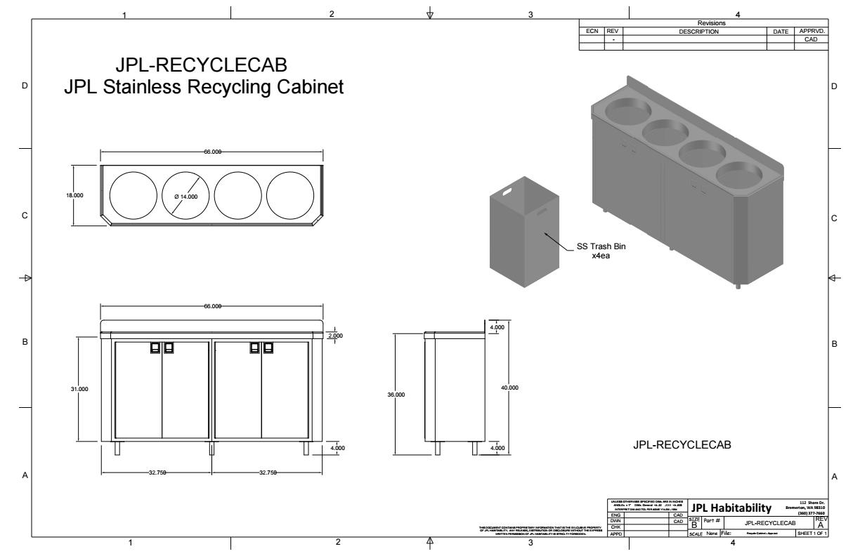 JPL-RECYCLECAB – Stainless Trash/Recycle Cabinet with Countertop and 4 Removable Containers
