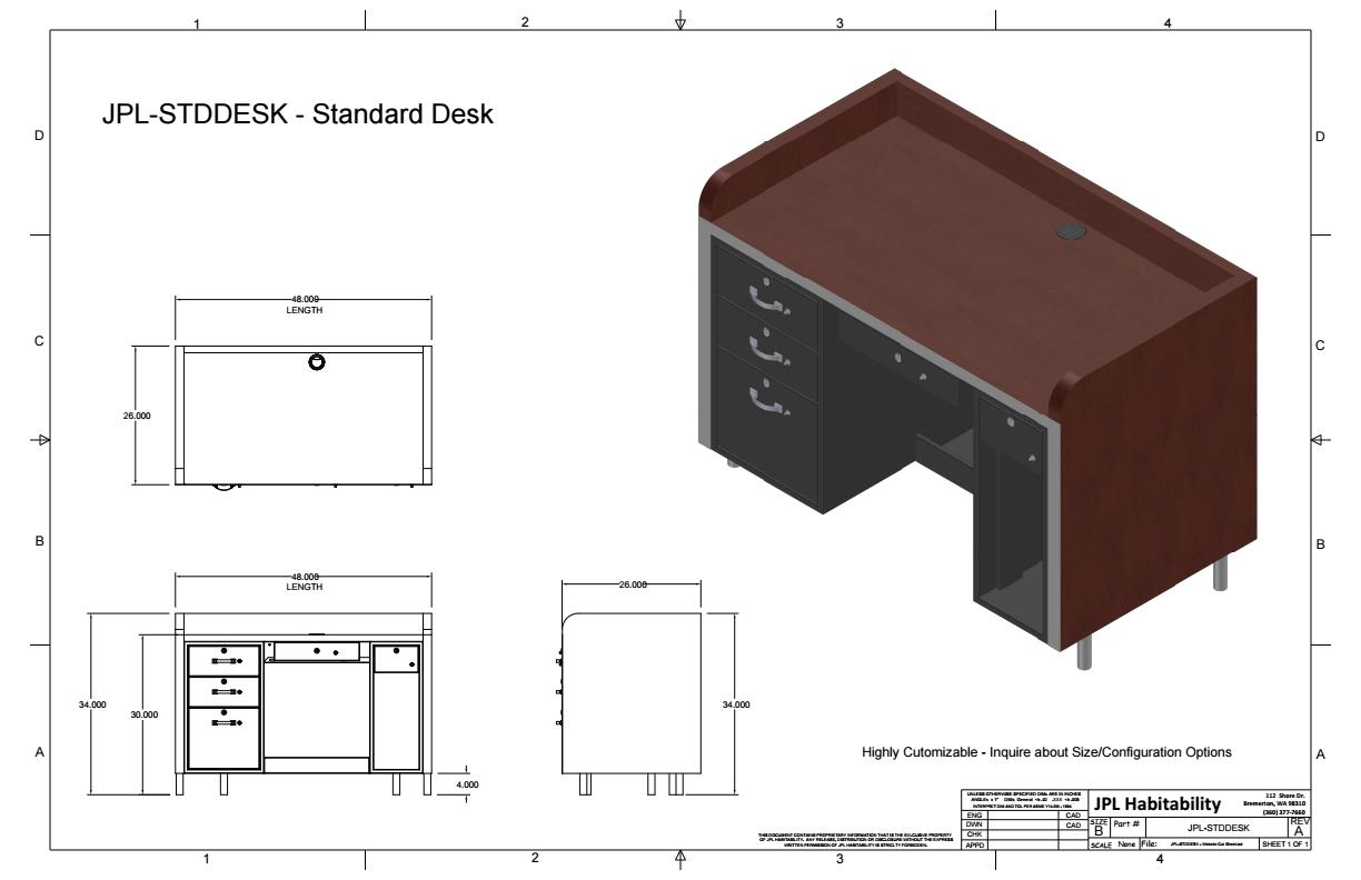 JPL Standard Desk – 48″L with 3 Drawer File Cabinet, CPU Cabinet and Pencil Drawer