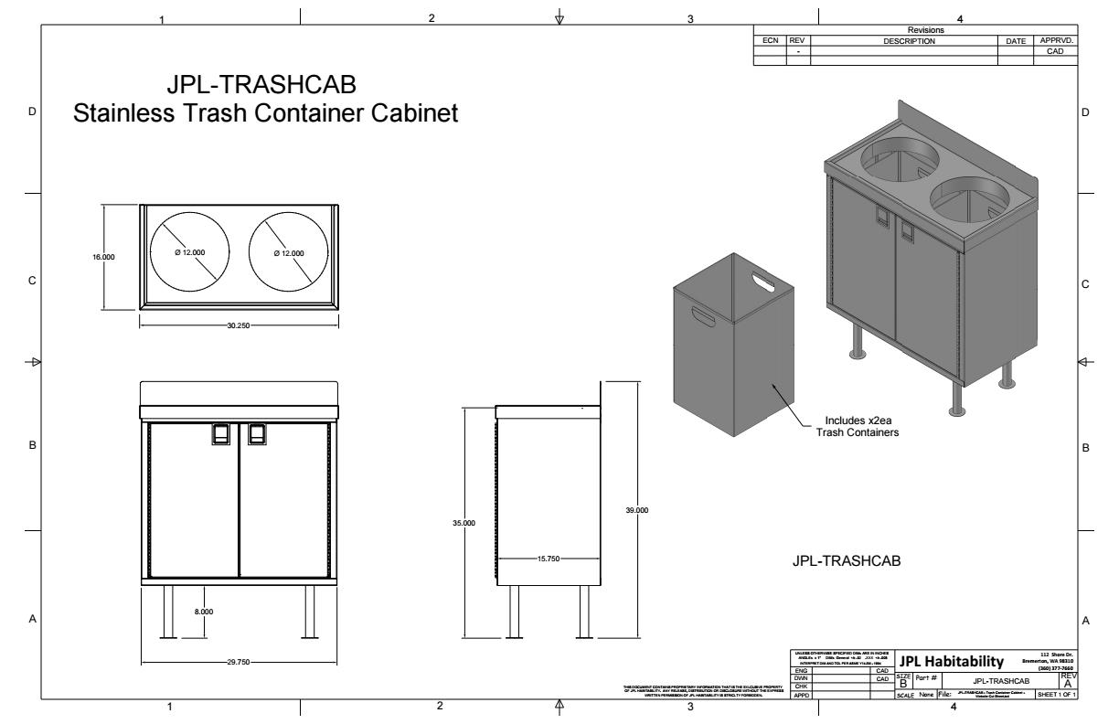 JPL-TRASHCAB – Stainless Trash/Recycle Cabinet with Countertop and 2 Removable Containers